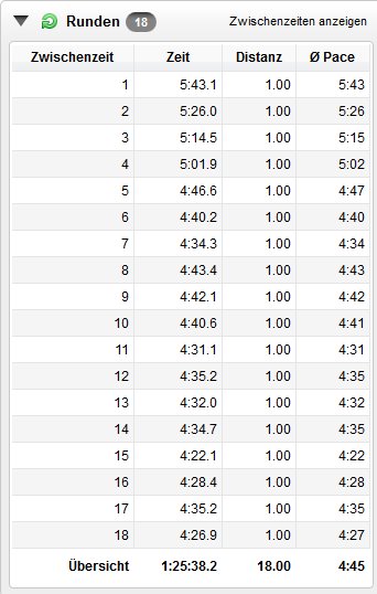was in einigen KM um die 4min/Km endete, so dass nicht alle mehr folgen konnten.