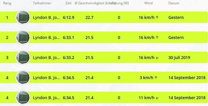 Meine Bestzeit beträgt 3:08