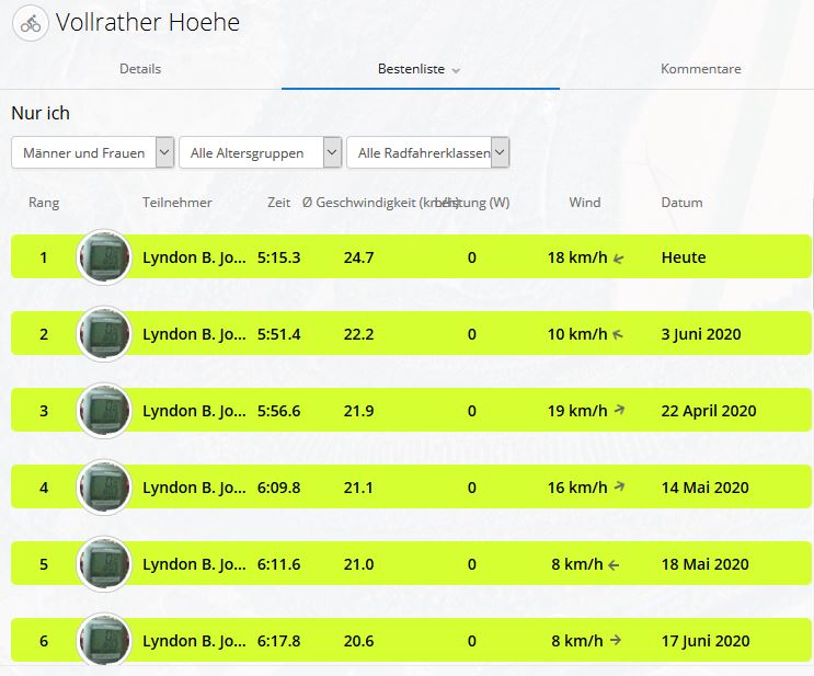 Weiterhin habe ich mir persönlich zum Ziel gesetzt, meine Bestmarken an den verschiedensten Anstiegen deutlichst zu verbessern,